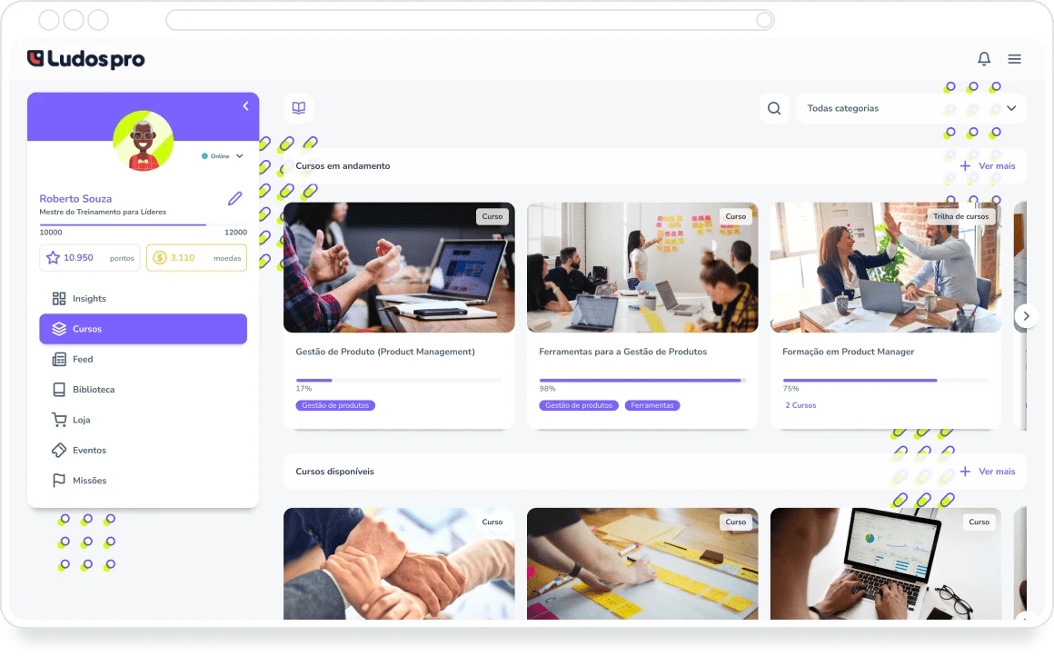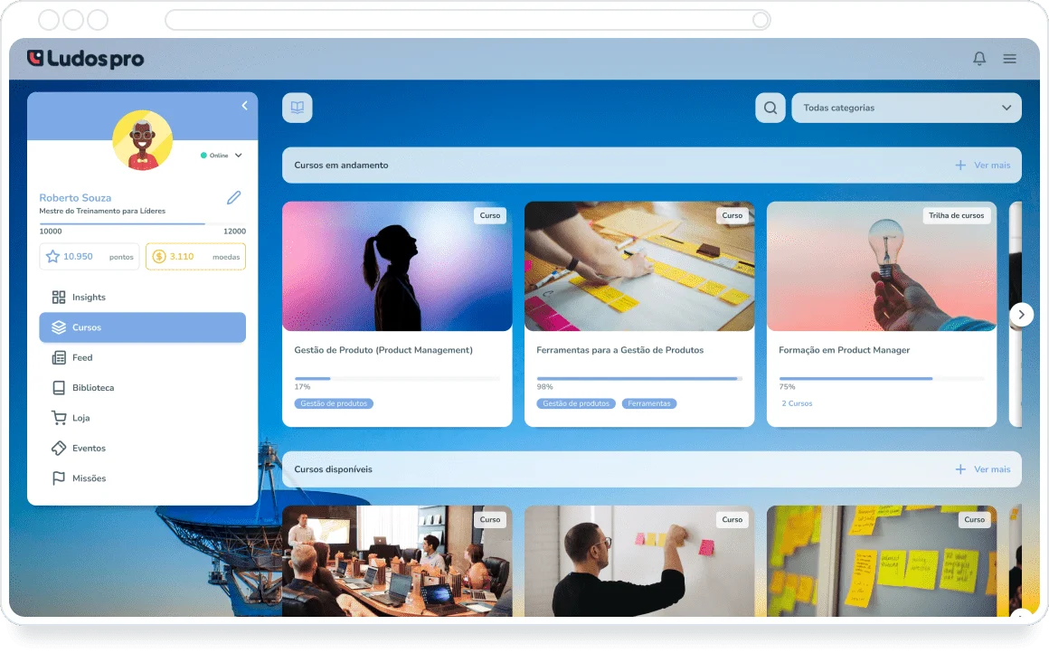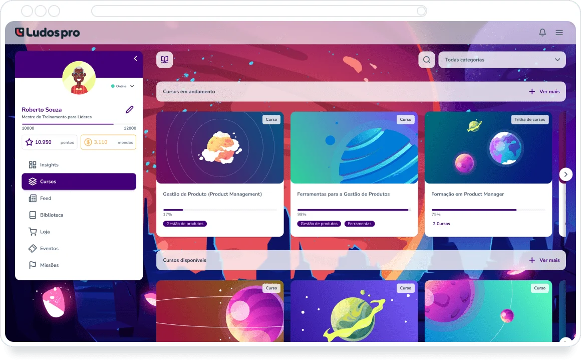 Com o Ludos Pro é possível criar, personalizar e gamificar sua plataforma de forma rápida e intuitiva.