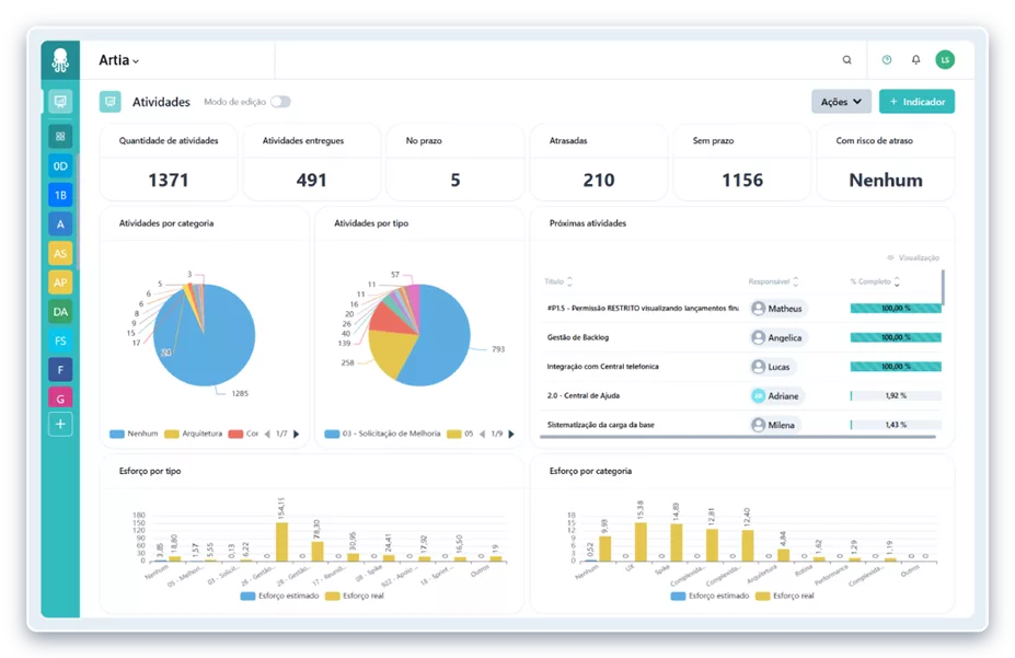 - Análise de dados: customização de dashboards poderosos para análise de projetos