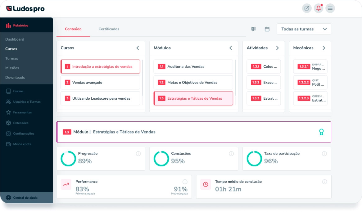 O Ludos Pro possui um ambiente gerencial completo, mas caso você opte por realizar análises cruzadas é possível exportar os dados para o Excel e manipulá-los da maneira que desejar.
