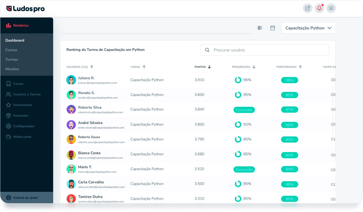 O sistema de ranking identifica os melhores colocados nas atividades, destacando aqueles que melhor assimilam o conteúdo proposto. Ele serve para estimular a competição e incentivar os participantes a alcançar melhores resultados.